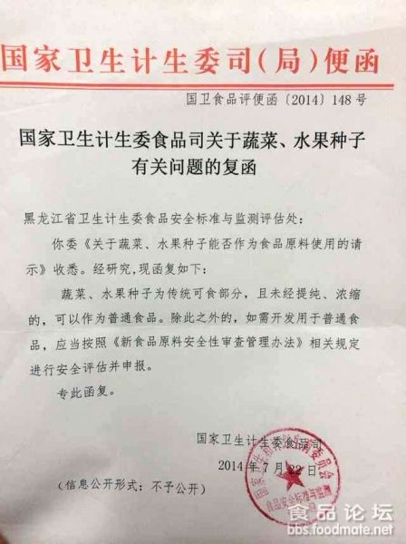 國家衛(wèi)生計生委食品司關(guān)于蔬菜、水果種子有關(guān)問題的復(fù)函
